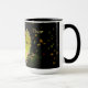 Mug con una vaina de agua realzada digitalmente con crecimiento colorido a su alrededor. El fondo es negro, y el nombre se puede cambiar a macho o hembra.