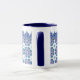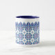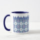 Esta impresionante taza cuenta con un interior y una manecilla azules y un diseño de mosaico intrincado en el exterior con azul y violeta. Se adaptará a cualquier tipo de ambientes. Este diseño se origina en un mosaico real de Oregon Tile maker Fay Jones Day.