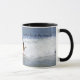 Mug con una imagen de gente jugando en las olas en la playa. Las palabras en la taza son "Prefiero estar en la playa".