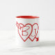 Gráficos cardíacos. Personalice el texto en estos corazones. La imagen central es un gráfico con una flecha que recorre dos corazones entrelazados. Cada corazón tiene una inicial. A ambos lados hay un solo corazón con un nombre diferente en cada uno.