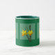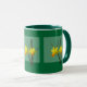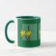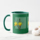 Imagen fotográfica de daffodils amarillos contra cuadrados difusos sobre fondo verde oscuro.