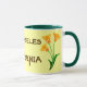 Un logo de Los Ángeles, California con un estilo de letras Art Deco o Nouveau en tonos marrones y dorados con arte vintage de amapolas en naranja en verde Inspirado por el estilo de Artes y Oficios de California en los años 20 y 30.