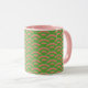 Inspirado por los patrones de onda japoneses, el seigaiha y la magia elemental que se encuentra en mundos de fantasía, este diseño representa a la naturaleza, con hojas verdes de primavera y pétalos rosados para recordar la curación, enredo y otros hechizos asociados con este elemento. Esta taza está disponible en una variedad de colores, tamaños y estilos, incluyendo tazas de viaje y steins.