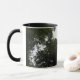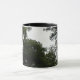 Esta hermosa taza muestra una fotografía tomada desde dentro de un denso bosque. La fotografía muestra la oscuridad de los árboles y una pequeña zona de cielo gris. El resultado es una escena espeluznante y evocadora. El diseño se muestra en una taza de café de estilo jengibre blanco y negro, pero también está disponible en otros estilos y colores de tazas.