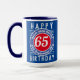 Colores brillantes y diseño audaz. Mug de cumpleaños numerada. El diseño se repite en ambos lados. 65 años.