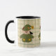 Este Country Scarecrow Mug presenta un espantapájaros de país dibujado con un poco de cuervo en el hombro.
