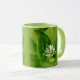 Mug de flores de pollo - Esta encantadora taza presenta una delicada fotografía de la Flor de pollo (Stellaria media), una hierba anual tierna y comestible nativa de Europa pero naturalizada en muchas partes de Norteamérica. Las pequeñas flores en forma de estrella son una hermosa e intrincada obra de arte, que florece a principios de primavera en el patio trasero del fotógrafo. La imagen muestra la delicada belleza de esta hierba, que ha sido utilizada en medicina de hierbas y cuidado de la piel durante siglos