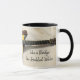 Esta taza evoca el sonido de la música folclórica, con una fotografía de una guitarra clásica de madera con una colorida correa tejida en rojo y negro con toques de blanco y azul. El fondo de crema neutra tiene una textura sutil.