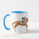 Diseño original de arte fino de un caballo de carreras Thoroughbred por la diseñadora Carolyn McFann de Two Purring Cats Studio en una taza de calidad.