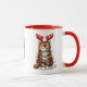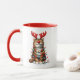 Este Adorable Gracioso Gato Navidad Mug presenta un gato malicioso. Este Kitty caprichoso tiene una Nariz grande de rudolfo rojo, pollos de venado, y está enredado en luces de Navidad. Perfecto para los amantes de los gatos que aprecian un poco de las travesuras navideñas. Personalice esta agrupación de Navidades de gato agregando su propio nombre.