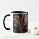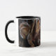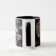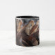 una fotografía clara y nítida y un pinecone esmerilado embellecen esta taza junto con un mango azul y una llanta para calentarte en el frío clima de otoño!! Este mango de color y llanta le da un ambiente a esas bebidas calientes.