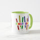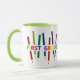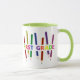 Esta es una taza para un profesor de primer grado con lápices multicolores y las palabras Primer grado a través de los lápices. Esto haría un gran regalo de vuelta a la escuela, apreciación del profesor o final de año.
