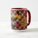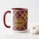 Disfruta de tus bebidas favoritas en esta taza festiva de reno de personalizable. Con una alegre silueta de reno con un mensaje de "Feliz Navidad" delineado de oro sobre un clásico fondo de manta roja, esta taza aporta calidez y encanto a sus mañanas de vacaciones. El diseño incluye un área de personalizable para un nombre y un mensaje, lo que lo convierte en un regalo único y personal para amigos y familiares. Perfecto para tomar café caliente, café o té, esta taza le agrega un toque caprichoso a sus tradiciones de vacaciones.