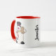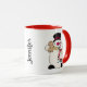 Añade un toque de Whimsy y Diversión a tus mañanas con este Adorable Snowman Mug! ¡Esta encantadora taza de Navidades presenta a un hombre de nieve que es demasiado lindo! Está sosteniendo un Santa Mug que está lleno hasta el borde con crema batida. También sostiene una galleta de hombre de pan de jengibre. Puede personalizar fácilmente esta taza de Snowman agregando su propio nombre. Personaliza este contenido de Navidades festivos mug a tu corazón!