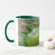 Esta hermosa taza muestra una fotografía de un grupo de tomates verdes sin madurar que crecen en una planta de tomate en un jardín suburbano. La fotografía fue tomada usando macrofotografía para un resultado detallado. El diseño se muestra en un tazón de estilo jengibre verde, pero también está disponible en otros estilos y colores de tazas.