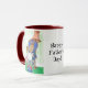 Una taza de ringer blanca con el labio rojo oscuro y el mango, que hace juego con las zapatillas y la corbata del señor Rabbit mientras se relaja en su sillón favorito con el periódico y un cuppa! El diseño proviene de una pintura acuarela de Judy Adamson. Las tarjetas de felicitación con este diseño también están disponibles en mi tienda.