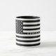 Bandera norteamericana Mug Freedom en blanco y negro con LIBERTAD a raya. Un recordatorio de que no es libre y debe ser combatido.
