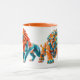 Deux lions majestueux, un lion montre ses crocs, l'autre est tranquille, un contraste rugissant de deux fauves lumineux en couleurs vives.