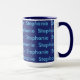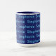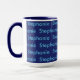 Nombre en azul claro sobre fondo azul oscuro. Personalice con el nombre que elija y estará embaldosado en un patrón escalonado de "medio ladrillo".