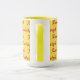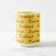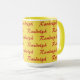 Nombre en rojo oscuro sobre fondo amarillo. Personalice con el nombre que elija y estará embaldosado en un patrón escalonado de "medio ladrillo".