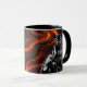 Un mug à l'image féline d'une panthère noire assise au premier plans d'un champ de lave en fusion.