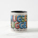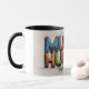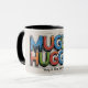Un diseño vibrante, dibujado a mano, que presenta la lúgubre frase "Mugger Hugger" en letras audaces y coloridas, perfecta para los amantes del café que abrazan sus tazas con alegría y calidez.