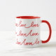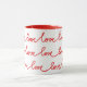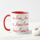 Tirpografía con temática moderna de San Valentín rojo y blanco con el texto rojo "amor" contra un fondo blanco,