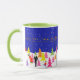 Esta granja de árboles de Navidad retro cuenta con una familia moderna, minimalista y personalizado de mediados de siglo en busca del árbol perfecto para el recorte. El diseño muestra a mamá, papá y Junior en un colorido estilo de los años 60, un árbol de Navidad que parece pertenecer a un programa especial de vacaciones televisado. Los llamaron la atención los brillantes focos amarillos que iluminaban el cielo de la noche y los hilos de coloridas luces Navidades, que se colocan de polo en poste. El terreno cubierto de nieve ofrece árboles de la variedad personalizado. No esperes encontrar un abeto azul aquí. Pero si la familia quiere un árbol rosa, púrpura, amarillo, naranja o rojo, ¡tienen suerte! Hey, hay incluso un par de cedros verdes, si eligen ir por una ruta más tradicional. La nieve sigue cayendo sobre la alegre familia cubierta con su atuendo de vacaciones. Junior está usando dunares azules y una camisa que es más roja que la nariz de un cierto reno. Papá lleva un traje negro con una corbata verde brillante. Pero es mamá la que pone el jaleo es el armario de esta familia. Lleva un vestido rojo con guarnición verde y un sombrero Santa a juego. Mamá y papá aún están celebrando, sin saber que Junior está haciendo una loca carrera hacia el árbol rosado caliente de sus sueños. ¡Chequea a cada lado, Junior! No haría para comprar un árbol con manchas calvas. ¿No lo sabrías? El árbol es tan perfecto como este diseño. De hecho, si este diseño fuera más perfecto, se oiría un coro de niños cantando al fondo.
