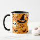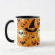 Esta es una taza especial llena de la atmósfera de Halloween. Es un artículo perfecto para la temporada de Halloween ya que muestra varios personajes de Halloween como fantasmas lindos, calabazas, brujas y más. ¡Disfruta de algo de diversión de Halloween con una bebida caliente de esta taza!