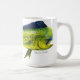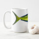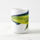 Una taza de pescado Mahi Mahi, colorida y brillante. ¡Un pez amenazador que hará una declaración dramática en la cocina! Tomada de una pintura acrílica original del artista E.Wrigley, radicado en Devon.