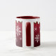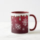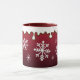 El chocolate caliente está goteando por esta honda taza de copo de nieve roja. Los diseños son de arte original.