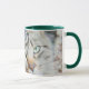 Hunter green 11 oz Combo Mug con ojos verdes gato mirándote.