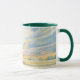 ¡Eleva tu rutina matutina de café con la taza del amanecer del Medio Oeste! Esta pintoresca creación del artista de acuarela Pamela Hallock capta la esencia del Medio Oeste, exhibiendo amplios campos de maíz bañados en la luz suave y temprana de un amanecer. Mientras toma su cerveza favorita, deje que la tranquila belleza de este paisaje le dé la bienvenida a su día con estilo.