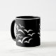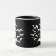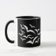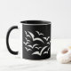 Esta taza de ringer en blanco y negro muestra una colección de imágenes simples de murciélagos volando juntos en un patrón de nube. Los murciélagos son blancos y el fondo es negro. A los niños les encantará este bonito diseño.