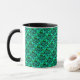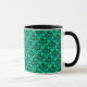 Tribal Mug por café o té. Esta impresión tiene una huella de mosaico geométrica. Los colores son negro y verde. El interior y el asa son negros. Estilo: Combo Mug Gracioso, único, bonito o personal, es tu elección para la taza de café perfecta. El exterior de la taza cuenta con una base blanca brillante. Disponible en 11 onzas o 15 onzas Dimensiones: 11 onzas: 3,2" D x 3,8" H 15 onzas: 3,4" D x 4,5" H Microondas y lavavajillas Seguridad Fuerte, construcción de cerámica Cumple los requisitos de la FDA para la seguridad de alimentos y bebidas Impresa a petición en Reno, NV