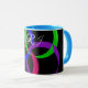 This geometric mug features a custom multi color 3D circular interchange theme. Text customization and additional mug colors options are available.