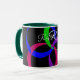 This geometric mug features a custom multi color 3D circular interchange theme. Text customization and additional mug colors options are available.