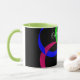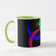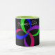 This geometric coffee mug features a multi color 3D circular interchange theme. Text customization and additional mug colors options are available.