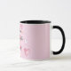 Personalized Mum you're the Best Mother's day coffee mug featuring, pink, yellow and blue doodle heart with the words "Mum you're the Best" on a plain blush pink background and a mother's day verse inside (all can be changed to suit).