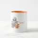 Este personalizable de diseño de tazas con temas de "Halloween" presenta tres lindos fantasmas con trajes de momia con un texto que puedes personalizar.