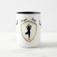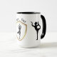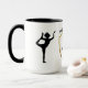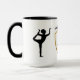 Acá una divertida taza de yoga específicamente para celebrar el Día Mundial del Yoga (21 de junio). El centro es un escudo dorado con la silueta negra de una mujer haciendo Yoga. A un lado también hay dos siluetas. Puedes comprar este diseño en cualquier bebida que te ofrezcan. Diseñado por Sheila Cicchi, Brownielocks.com. Todos Los Derechos Reservados.
