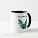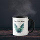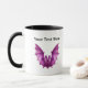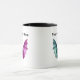 Este tazón de café o té tiene dos murciélagos peludos espeluznantes con alas abiertas en vuelo. Uno es rosa vibrante y el otro verde vibrante. Personalizar el texto con la plantilla.