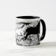 Los mustangos, de ilustraciones originales, compiten con a través de esta taza.