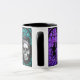 Step into a world of shadow and splendor with this Gothic stained glass mug, featuring four vertical panels inspired by cathedral windows. Each panel showcases a mythic guardian: a regal griffin in violet, a fallen angel in crimson, a crouching gargoyle in emerald, and a skull adorned with sacred carvings in sapphire. Framed in pointed arches and crowned with rosette medallions, the design evokes medieval grandeur and symbolic depth. Cracked glass textures and muted tones add a vintage, mysterious aura. Ideal for lovers of dark fantasy, mythic art, and Gothic architecture.