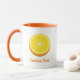 Icono de naranja a la mitad. Color de fondo personalizado. Texto personalizado en ambos lados.