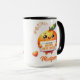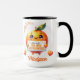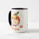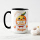 Esta divertida taza muestra a un lindo naranja sosteniendo un cartel que dice 'Naranja, te alegra ser amigos' con una opción de nombre personalizado.
