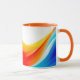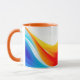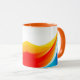 Naranja retro y líneas curvadas abstractas azules taza de café