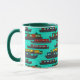 Canal boat and narrowboat owners will love this mug! It features a pattern of lots of colourful, hand drawn canal boats floating along the blue waterway. Look closely and you'll also see some cormorant birds on the boats, with their wings spread