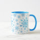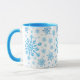 Los copos de nieve azul bonito de tamaño mixto están esparcidos por este patrón estacional de Navidades. Este bonito diseño festivo con un crujiente fondo blanco invernal seguro que gustará a cualquier edad y es perfecto para todo aquel que guste de los delicados y suaves patrones de Navidad.