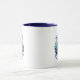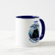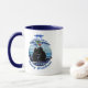 Navidades Gato Mugs, Navidades Meowy Cute abrazando gatos barro diseño hecho en azul clásico y blanco.
